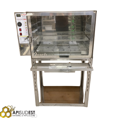 Extracteur manuel 4 cadres en inox, pratique et solide, idéal pour les apiculteurs souhaitant récolter leur miel simplement et efficacement.