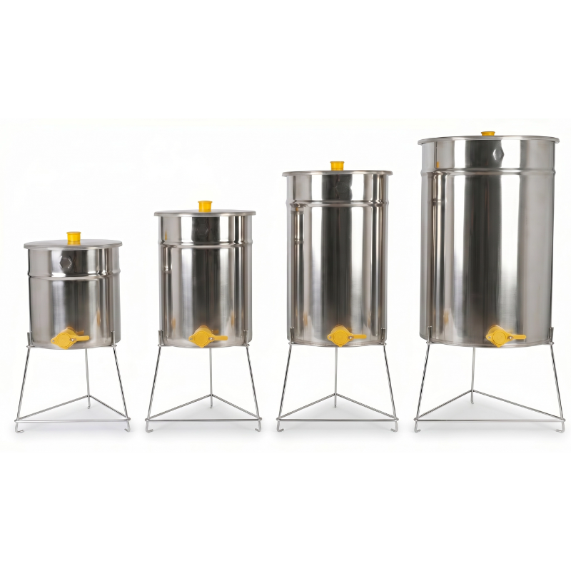 L'utilisation de ces supports surélève vos maturateurs à une hauteur idéale, ce qui transforme radicalement l'étape de la mise en pot. Vous pouvez ainsi placer facilement vos seaux ou vos pots directement sous le robinet à clapet, évitant les manipulations fastidieuses et les risques de renversement. L'acier inoxydable n'est pas seulement un gage de longévité, il répond aussi aux normes d'hygiène strictes de l'apiculture : il ne rouille pas, résiste à l'acidité du miel et se nettoie très facilement à l'eau chaude. En choisissant la déclinaison adaptée à la taille de votre cuve (50, 100 ou 200 kg), vous sécurisez votre installation et optimisez l'espace de travail dans votre miellerie.