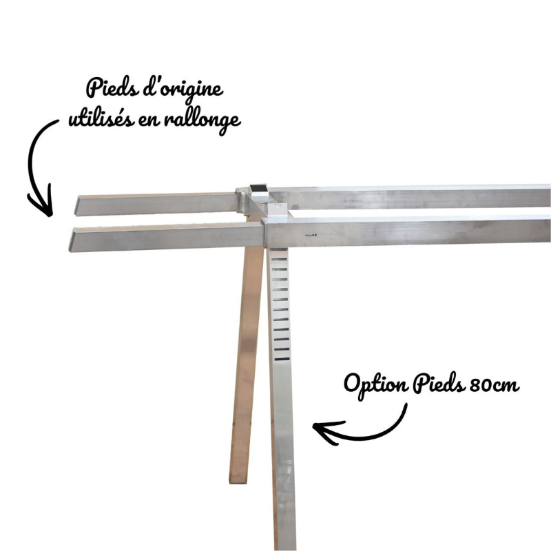 Le jeu de 4 pieds réglables en aluminium permet de rehausser votre support de ruche jusqu'à 80 cm, pour travailler debout dans de bonnes conditions et accueillir des ruchettes de fécondation à hauteur confortable.